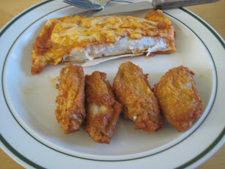 I was starving after the gym, so the fiance' and I finished off the enchiladas and I had a couple of wings. They are my downfall after all.....